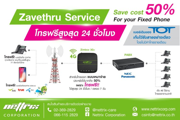 Zavethru Service เป็นบริการโทรศัพท์พื้นฐานผ่าน ตู้สาขา PABX รูปแบบใหม่
