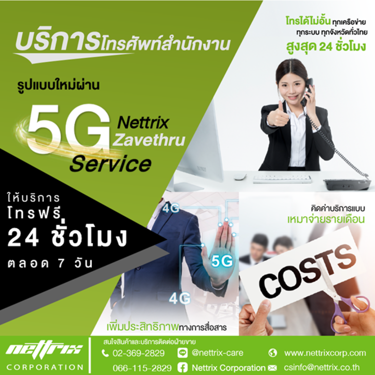 ให้บริการ โทรฟรี 24 ชั่วโมงโดยเชื่อมต่อกับ ตู้สาขา PABX ซึ่งช่วยให้ท่านสามารถ ใช้บริการ โทรฟรี !!! 24 ชั่วโมง ผ่านเครือข่ายระบบ 5G